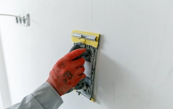 После высыхания первого слоя шпаклевки его нужно зашлифовать наждачной бумагой или шлифовальной сеткой с алмазным напылением для удаления лишней шпаклевки и наплывов.